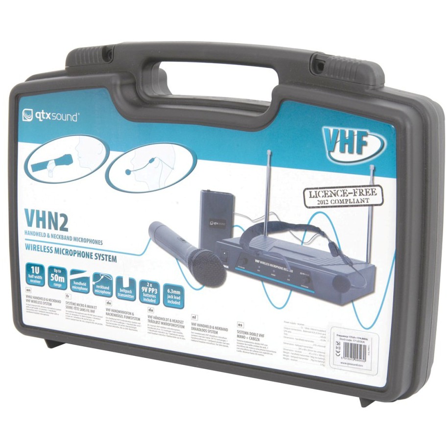 Úvod »Audio technika» QTX VHN2, 2-kanálový bezdrátový mikrofonní set 174,1 MHz / 175,0 MHz