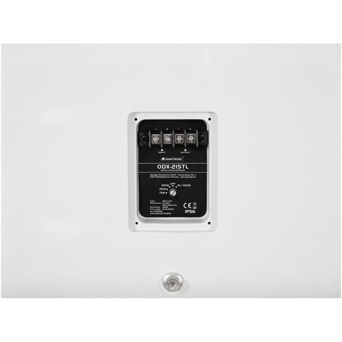 Úvod »Audio technika»Pasivní reproboxy » OMNITRONIC ODX-215TL, 100V nástěnný 15" reproduktor, 400W, IP65, světle šedý