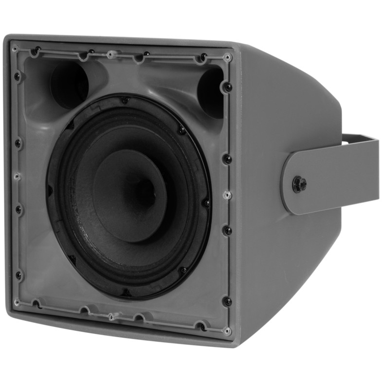 Profesionální 100V reproduktor vhodný pro plošné ozvuční. Dobře vyvážený hudební projev. 2-pásmový koaxiální systém, voděodolné provedení, plastový kryt, montážní držák. Možnost konvenčního 8 ohmového (150W RMS) nebo 100V zapojení (přepínač pro nastavení výkonu 37, 75 nebo 150W). Reproboxy jsou odolné proti povětrnostním vlivům (IP56) montážní držák je polohovatelný. Tmavě šedé barevné provedení, šroubovací terminál (IN/OUT) s krytkou pro připojení reproduktorů.